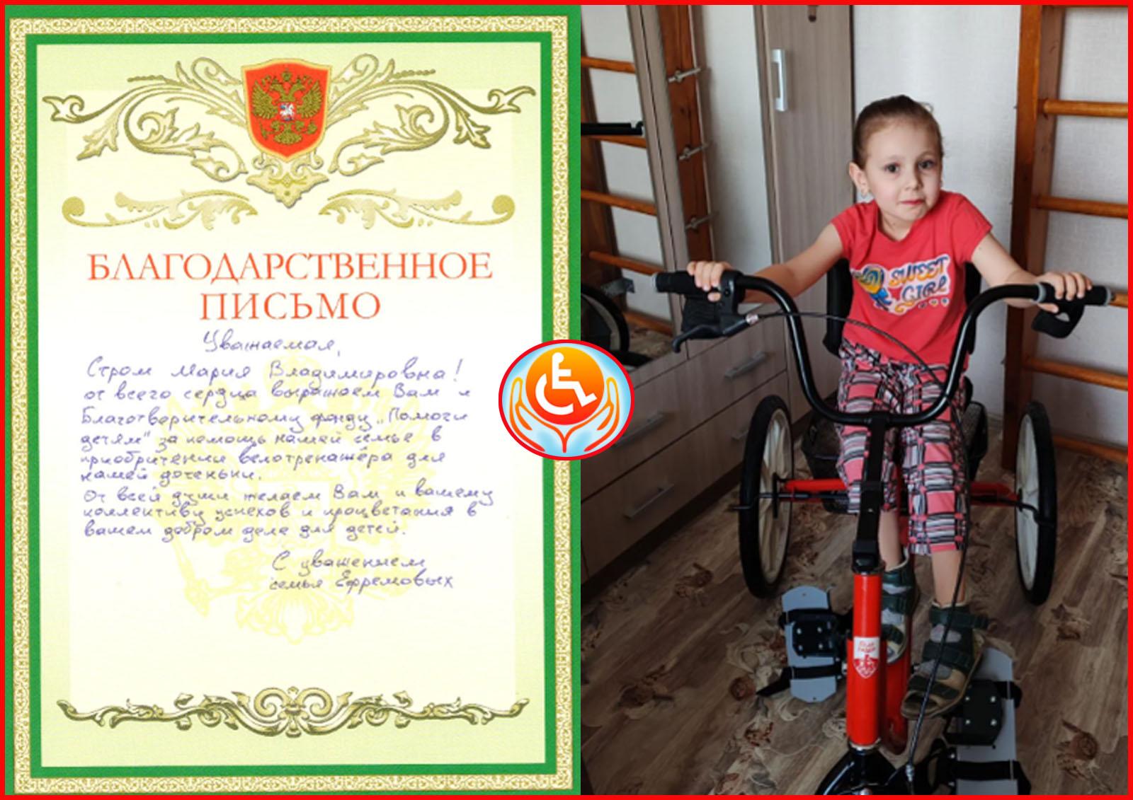 БФ "Помоги Детям" был оплачен велотренажер "Мотомед" для Стром Саши из города Оренбург