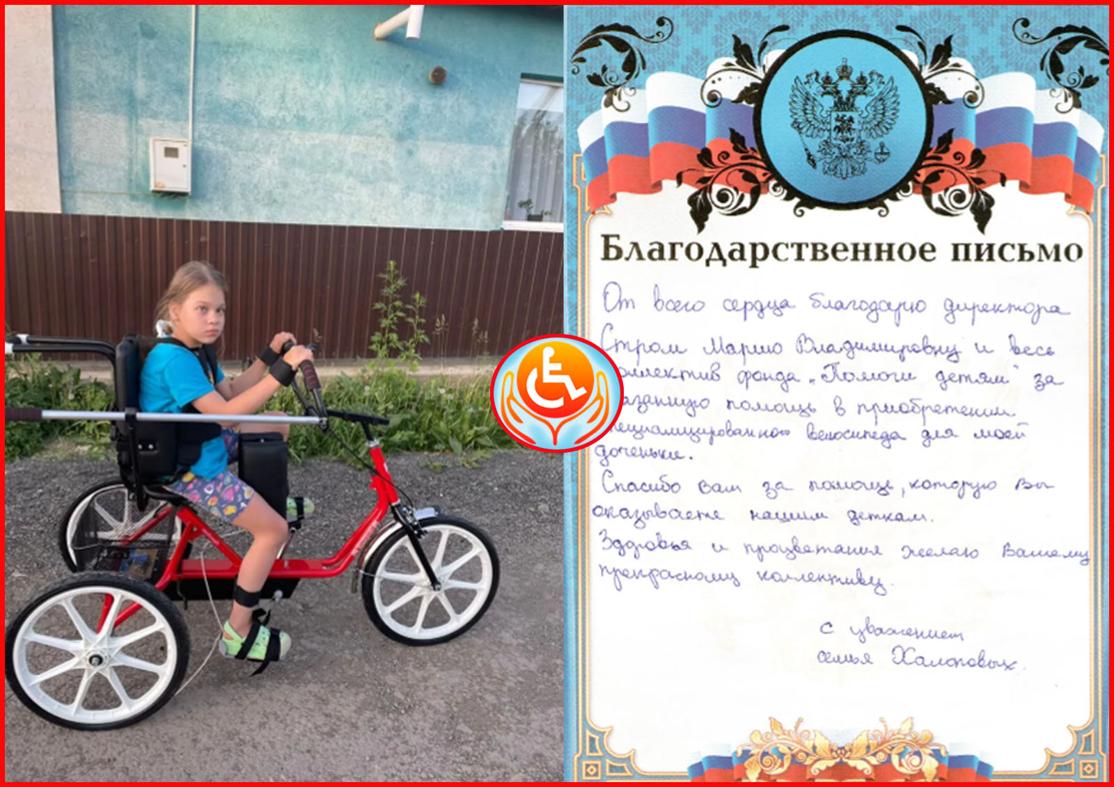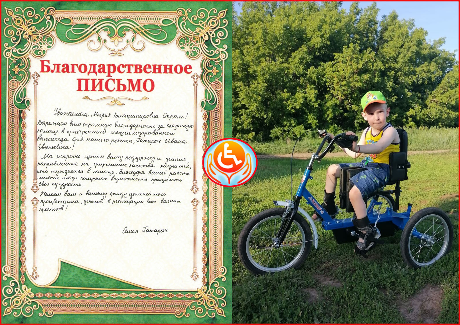 Для Сидоровой Оксаны ( г.Оренбург) был приобретен специализированный велосипед для детей с ДЦП "Велолидер" / Декабрь 2017 г.