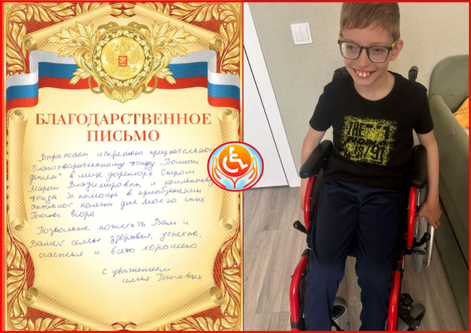Благодаря Вашей помощи и поддержке, наши добрые Друзья, мы закрыли сбор на Панина Аркаши! Аркаше куплена и доставлена очень удобная и комфортная детская инвалидная коляска "СТИНГРЕЙ" ! Спасибо всем! ВМЕСТЕ МЫ МОЖЕМ ВСЕ ! Мы спешим и дальше делать добро, присоединяйтесь! Добро Возвращается!!