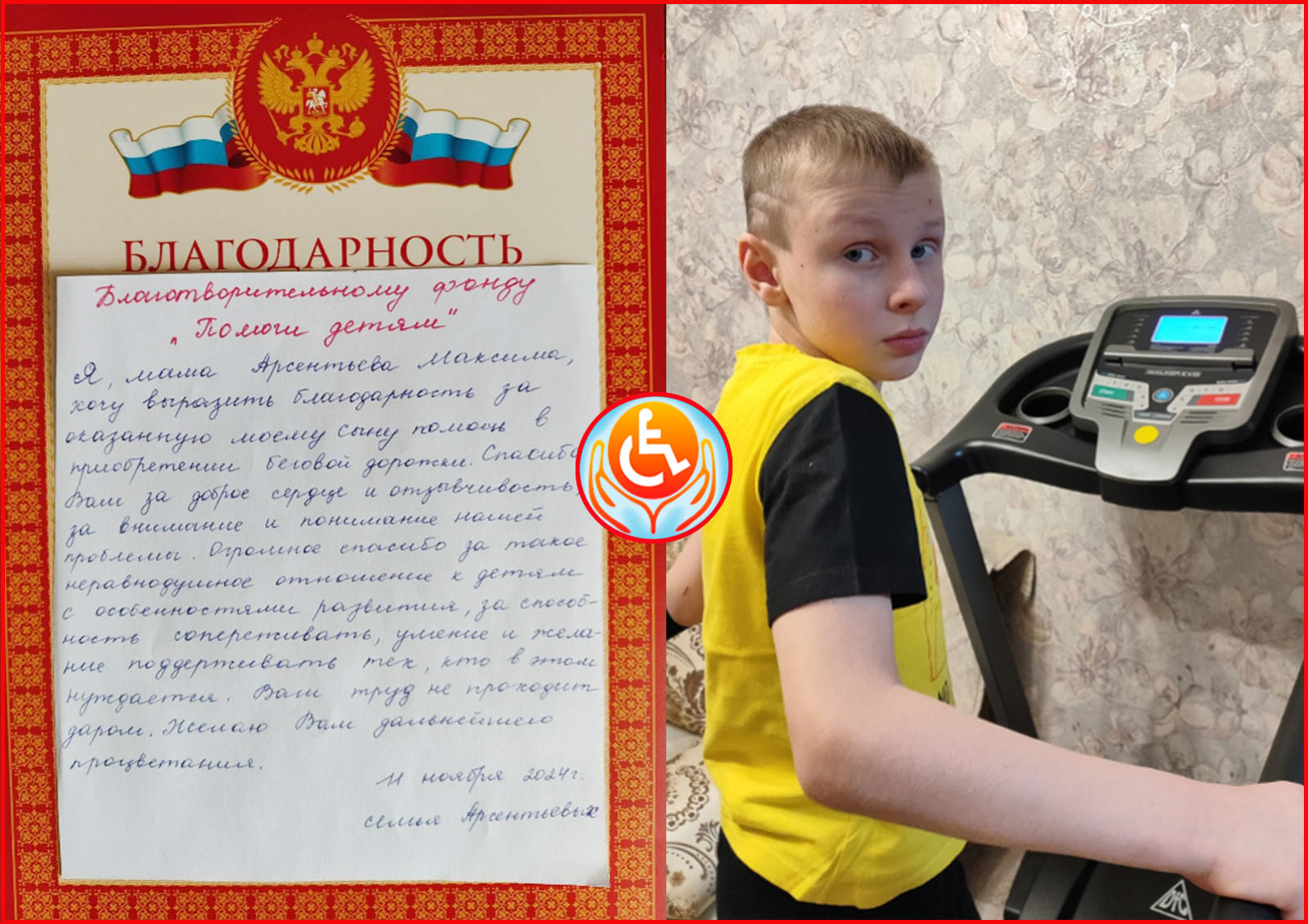 БФ "Помоги Детям" приобрел тренажер для ходьбы "Пароподиум" для Сусаевой Марии из города Оренбурга
